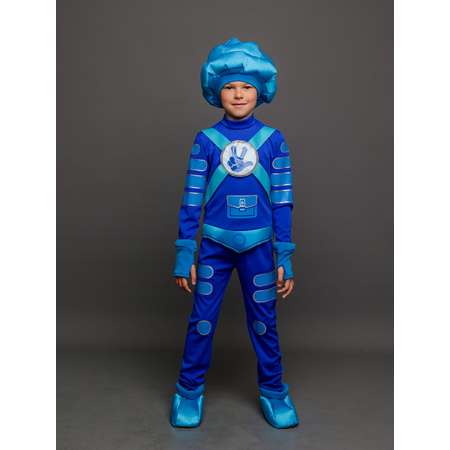Костюм Нолика - замечательный образ понравится всем маленьким поклонникам популярнейшего мультсериала. Нолик – один из главных героев мультика, отличающийся добрым, но немного рассеянным характером. Он является младшим братом Симки, часто попадает в передряги, но учится с ними справляться. Костюм Нолика представлен в насыщенной синей расцветке. Комплект состоит из куртки, брюк, ботиночек и шапки. Особенности: Куртка с длинными рукавами и значками на центральной части Рукава заканчиваются перчатками без пальцев Брюки на резинке прямые Ботиночки мягкие из текстиля Шапка в виде прически Нолика
