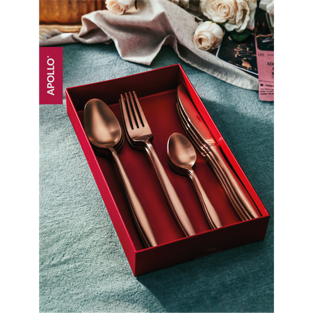 Набор столовых приборов APOLLO 16 предметов, розовое золото, матовые