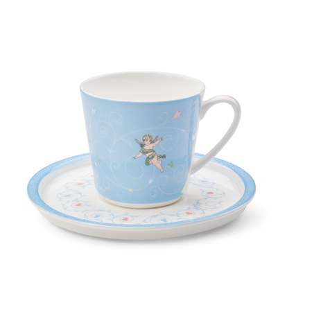 Особое внимание заслуживает дизайн. Нежно-голубой фон украшен утонченными изображениями ангелов и цветочных мотивов — символами гармонии, чистоты и вдохновения. Ангельские силуэты и изящные цветы создают впечатление легкости и воздушности, придавая чайной паре неповторимое очарование. Такой рисунок делает набор не просто предметом сервировки, а настоящим декоративным акцентом, который будет радовать глаз каждый день.