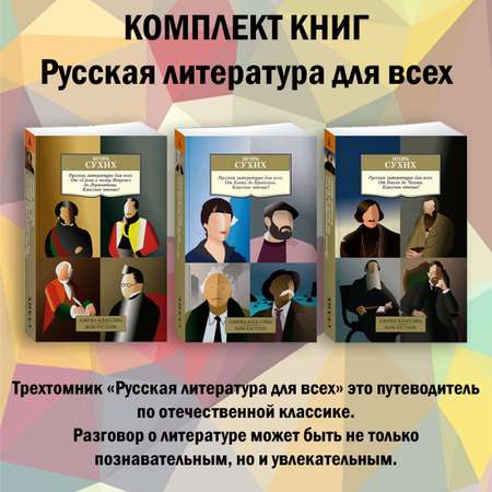 Трехтомник «Русская литература для всех» (первое издание — 2013) — это путеводитель по отечественной классике, адресованный самой широкой читательской аудитории. Он дает представление о национальном литературном каноне — от «Слова о полку Игореве» до авторов конца ХХ века. Настоящее издание дополнено новыми главами — «Фольклор: от былины до частушки», «Повести Смутного времени: счастье-злочастие», «А. Д. Кантемир», «А. Н. Радищев», «Н. С. Лесков», расширены главы о Салтыкове-Щедрине и Горьком, а также включен большой раздел «Язык русских писателей». «Русская литература для всех» — одна из тех редких книг, которые со временем не устаревают. Она еще раз доказывает то, что филология — не унылая наука и серьезный разговор о литературе может быть не только познавательным, но и увлекательным.