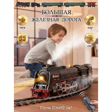 Шикарный игровой набор железная дорога с поездом. Локомотив с паром из трубы и колес, красивой подсветкой носового фонаря и трубы, звуковыми эффектами, движением вперед и назад. Плавный разгон, как у настоящего локомотива. Вагоны с подсветкой, работа от заряжаемого аккумулятора, управление локомотивом с помощью кнопок на корпусе. Легкая сборка железной дороги, общая подробная инструкция на железную дорогу и состав, бутылочка в наборе. Отличное качество исполнения, прочные и долговечные материалы, внимание к деталям, реалистичная модель локомотива, выполненная в ретродизайне. Благодаря подсветке можно играть в темное время суток. В наборе детали для сборки железной дороги 83 штуки, локомотив, 4 вагона, 2 дерева, бутылочка для воды, USB кабель, крестовая отвертка, аккумулятор 3.7V, подробная инструкция на английском языке.