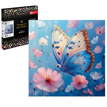 Алмазная мозаика с частичной выкладкой (набор для творчества) арт. 71436 / 25 ПАСТЕЛЬНАЯ БАБОЧКА, размер: 30*30 см, (11 цветов страз, холст на подрамнике с напечатанной картиной, покрытый клеевым слоем и защитной пленкой, пакеты со стразами, стилус, лоток для страз, силикон для страз, клей, подвесы для подрамника, пинцет металлический, схема, дополнительные пакеты с zip-молнией, стикеры для нумерации zip-пакетов в комплекте, форма страз: круглая, тип выкладки: частичная, картонная коробка).