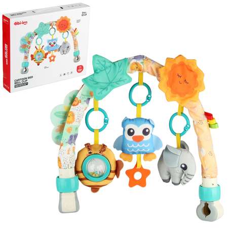 Подвеска на кроватку для новорожденных с гибким размером дуги с изменяемой шириной, простой механизм фиксации на бортике кроватки, легко закрепить, изменяемая ширина захвата. Съемные игрушки подвески с мягким наполнителем и гремящими элементами, дуга с мягким наполнителем, шуршащий материал солнышка и листочка. Безопасные и долговечные материалы, качественное исполнение, милый дизайн подвесных игрушек, яркие цвета.