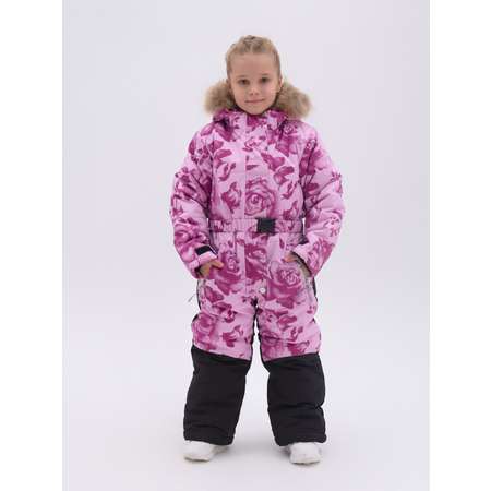 Зимний комбинезон для девочки с розами и с эластичным поясом на фастекс-застежке.