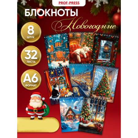 Набор новогодних блокнотов А6 32 листа, 8 штук.