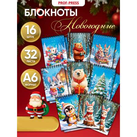Набор новогодних блокнотов А6 32 листа, 16 штук.