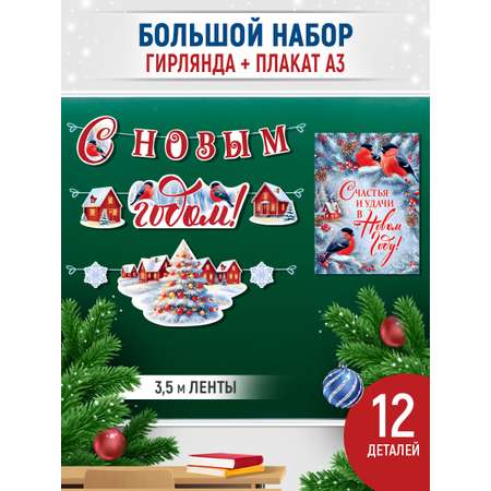 Плака гирлянда С новым годом Империя поздравлений новогоднее оформление в школу детский сад