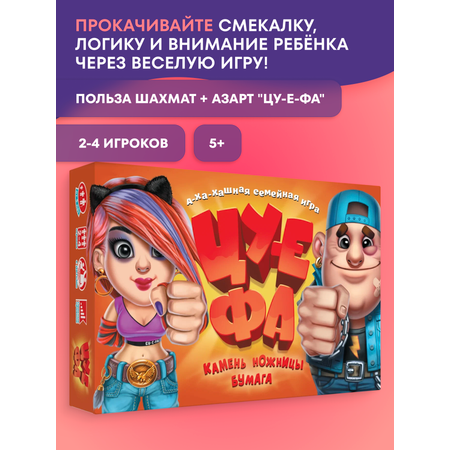 «Камень, ножницы, бумага — ЦУ-Е-ФА!» — весёлая игра для всей семьи, развивающая внимательность, память, логику и смекалку. Самая популярная наша игра на игротеках и фестивалях.