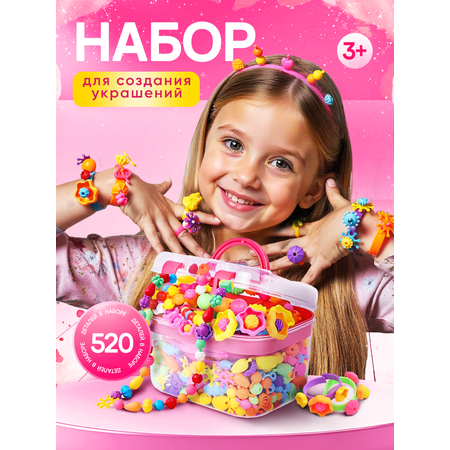 Большой набор для создания украшений SAYFUN toys – популярная и увлекательная игра для каждой девочки возраста 3+ Изготовлен из высококачественного, гипоаллергенного пластика. Прочный и 100% безопасный, его можно использовать для совместных игр родителей с малышами в 2, 3 года. Игрушка для девочки состоит из 4 основ - ободков, 8 основ - браслетов, 16 основ - колец, 1 упаковка страз и более чем 500 деталей конструктора (пластиковых бусин и шармов разных форм и размеров). В комплект входит удобный эргономичный кейс для сохранности всех деталей. Каждый элемент идеально подходит и легко крепится друг к другу. Можно создать невероятно красивые детские аксессуары, бижутерию и украшения для волос: корону принцессы, объемные кольца, браслеты, колье, ожерелья, яркие бусы, диадемы. Такой конструктор способствует развитию мелкой моторики, памяти, логики и внимания. Тренирует усидчивость, учит проводить время самостоятельно. Конструктор для создания украшений будет ценным подарком для дочки 5, 6 и 7 лет на новый год.