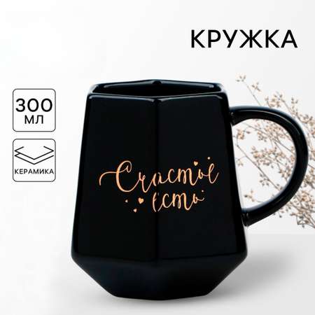 Кружка геометрия Дорого внимание Счастье есть черная 300 мл