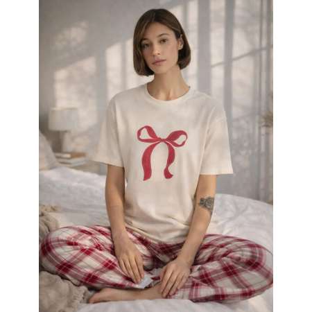 Хлопковая пижама для женщин со штанами и футболкой от белорусского бренда Mark Formelle. Костюм состоит из футболки оверсайз с коротким рукавом и прямых брюк, выполнена преимущественно из хлопка. Майка прямая, круглой горловиной и прямыми рукавами. Брюки свободные, с высокой посадкой и эластичной резинкой в поясе с завязками. Легкая одежда для дома на уютную погоду. Качественный трикотаж будет долго оставаться таким же ярким, как и в первый день, даже после множества стирок. Романтический домашний комплект с брюками подойдет для беременных, в роддом кормящим и будущим мамам и на выписку, для девушек подростков, а также для взрослых женщин плюс сайз (plus size) больших размеров. Широкий размерный ряд позволяет подобрать размер для худых и полных, высоких и невысоких женщин. Марк Формэль - гарантия качества собственного производства в Беларуси