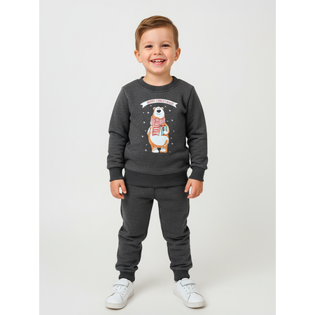 Костюм спортивный с новогодним принтом. В комплект входит толстовка и брюки джоггеры свободного кроя на манжете. Полотно состоит из хлопка с добавлением полиэстера, благодаря этому костюм для девочки очень удобный и эластичный. Свитшот имеет принт, который выполнен качественными красками. Благодаря конструкции костюм, не сковывает движения, ваш ребенок будет в максимальном комфорте. Сделано в России.