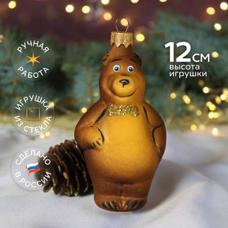 Игрушка новогодняя на елку из стекла ручной работы фигурка Медведь - это уникальное , оригинальное новогоднее украшение на елку ручной работы , которое позволит создать неповторимое чувство волшебного рождественского праздника! Елочные аксессуары для Нового года 2026 от фабрики новогоднего настроения Коломеев - это особенная коллекция с русской душой! Уникальные игрушки в духе советского декора дают возможность наполнить ваш дом атмосферой детских воспоминаний и ретро настроением. Декоративная необычная роспись добавляет подвесным изделиям винтажной тематики и уютного настроя СССР. Такие красивые елочные украшения станут душевным и ценным подарком для ваших близких на рождество!
