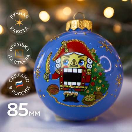 Игрушка новогодняя на елку из стекла ручной работы 8,5 см диаметр - это уникальное , оригинальное новогоднее украшение на елку ручной работы , которое позволит создать неповторимое чувство волшебного рождественского праздника! Елочные аксессуары для Нового года 2026 от фабрики новогоднего настроения Коломеев - это особенная коллекция с русской душой! Уникальные игрушки в духе советского декора дают возможность наполнить ваш дом атмосферой детских воспоминаний и ретро настроением. Декоративная необычная роспись добавляет подвесным изделиям винтажной тематики и уютного настроя СССР. Вы можете подарить вашей маме, сестре, подруге или коллеге большой стеклянный шар. Такие красивые елочные украшения станут душевным и ценным подарком для ваших близких на рождество!