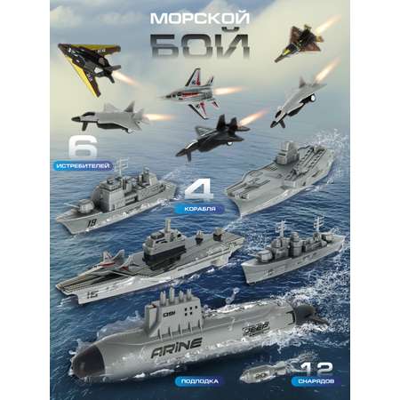 Игровой военный набор морской бой с большим количеством аксессуаров. Интересная задумка, качественное исполнение, прочные и долговечные материалы.