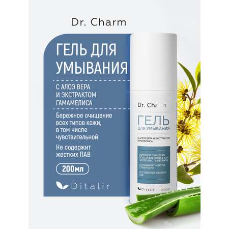 Гель для умывания лица с алоэ вера и экстрактом гамамелиса Доктор Шарм от Диталир бережно и эффективно очищает кожу от загрязнений, себума и макияжа, не вызывает чувства стянутости и сухости. Успокаивает кожу, сохраняет защитный барьер кожи.