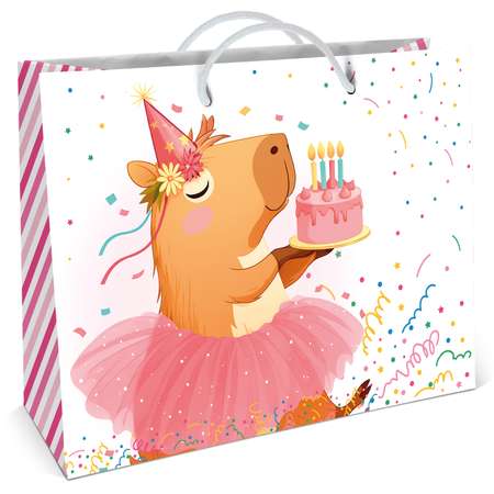Подарочный пакет с изображением милого капибара - прекрасно подойдет для упаковки подарков не только на Новый Год, но и Рождество, 8 марта, 23 февраля и конечно же на День рождения! Дарите яркие и незабываемые эмоции с подарочным пакетом от ND Play!