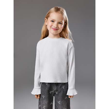 Детский лонгслив с манжетами для девочки изготовлен из мягкого и эластичного трикотажa в рубчик, который отлично подходит для повседневного ношения. Модель посадки comfort предполагает свободный крой, приспущенную линию плеча, а также увеличенные объем и длину рукава. Блестящий лонгслив с люрексом придаст утонченного шика даже самому простому образу. Длинные рукава дополнены по низу акцентными воланами, которые придают образу нежности и воздушности. Удобная округлая горловина не мешает при одевании. Детский лонгслив для девочки составит стильный повседневный образ в паре с джинсами (20220440111). 20220150126