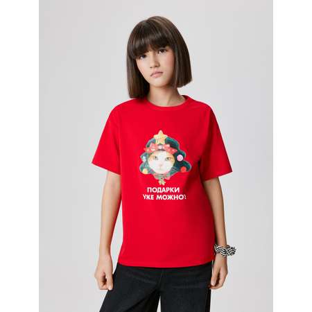 Новогодняя футболка для девочки-подростка изготовлена из хлопкового трикотажного полотна, отлично подходящего для длительного ношения. Модели COMFORT fit отличает свободный крой для более комфортного ношения. В футболке приспущена линия плеча, а также увеличены объем и длина рукава. Всё это создает расслабленный образ и позволяет свободного двигаться, чувствуя себя удобно. Красная футболка для девочки дополнена принтом кота в новогодней шапке-ёлочке и ироничной надписью "Подарки уже можно?". Футболка с котом для девочки-подростка станет отличным подарком на Новый год и зимние каникулы. Стилизуйте модель с любимыми джинсами и кедами, чтобы составить веселый и модный образ. 20240510049 20240510050