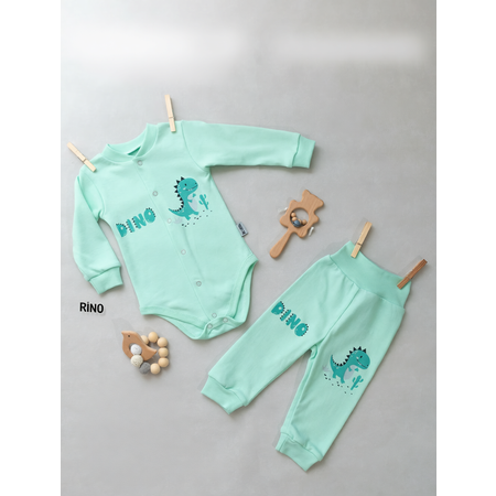 В этом комплекте ваш малыш будет выглядеть очаровательно. Он подчеркнет нежность и милоту вашего малыша. Комплект имеет принт с изображением доброго дракона Дино, что создает атмосферу новогоднего волшебства.