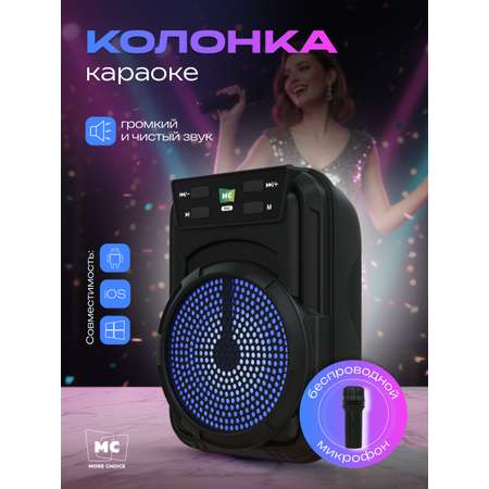 Яркая подсветка добавляет энергии, создавая атмосферу настоящей вечеринки. С выраженным басом и четкими высокими частотами, маленькая колонка от More Choice (Море Чойз) обеспечит настоящее наслаждение для всех любителей музыки и караоке.