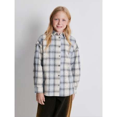 Рубашка для девочки прямого силуэта. Воротник-стойка. Застежка на петли и пуговицы расположена на центральной планке. Сзади кокетка. Рукав длинный со спущенным плечом, манжета с застежкой на петлю и пуговицу 20230260010