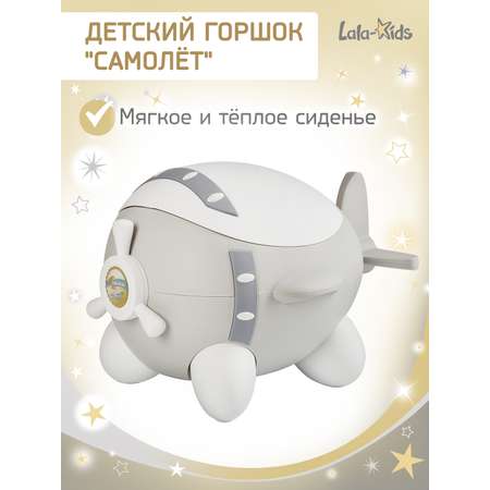 Горшок детский LaLa-Kids с мягким сиденьем Самолет серый