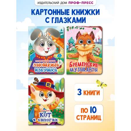 Книжки картонные Проф-Пресс с глазками 3 шт. Бременские музыканты+Кот в сапогах+Заюшкина избушка
