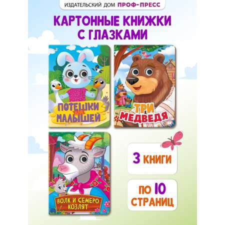Книжки картонные Проф-Пресс с глазками 3 шт. Волк и семеро козлят+Потешки+Три медведя