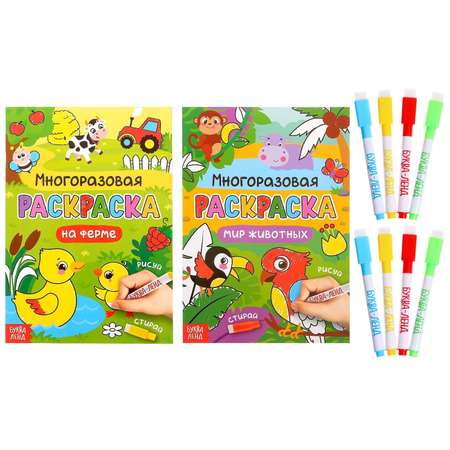 Книжное комплектное издание Буква-ленд Рисуй-стирай. Мир животных 2 шт по 12 стр