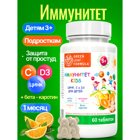 Цена на Цинк и витамин С Д3 для детей с 3 лет Green Leaf Formula детские витамины для иммунитета жевательные мишки со вкусом апельсина - 1800 ₽.