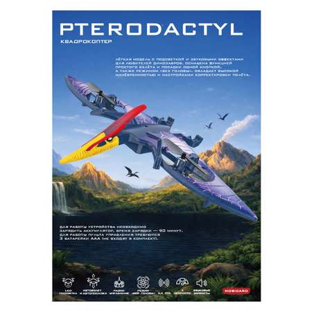 Квадрокоптер Pterodactyl в виде птеродактиля понравится любителям динозавров. Модель лёгкая и манёвренная, с подсветкой и звуковыми эффектами, имеет возможность корректировки полёта. Благодаря функции взлёта и посадки одной кнопкой, а также режиму «без головы», упрощающему возвращение модели, подойдёт даже новичкам.