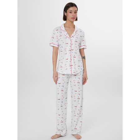 Пижама для женщин новогодняя со штанами и рубашкой с нежным новогодним принтом от белорусского бренда Mark Formelle. Костюм состоит из рубашки оверсайз на пуговицах с коротким рукавом и прямых брюк, выполнен из 100% хлопка. Брюки свободные, с высокой посадкой и эластичной резинкой в поясе. Одежда для дома на уютную весну и зиму. Качественный трикотаж будет долго оставаться таким же ярким, как и в первый день, даже после множества стирок. Романтический костюм с рубашкой подойдет для беременных, в роддом кормящим и будущим мамам и на выписку, для девушек подростков, а также для взрослых женщин плюс сайз (plus size). Пижамный комплект домашний станет отличным подарком любимой жене, сестре или подруге. Выбирайте размер в размер. Уютная новогодняя пижама для теплых вечеров и праздничного настроения. Мягкая ткань дарит комфорт, а стильный дизайн создает атмосферу праздника.