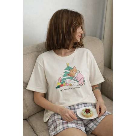 Футболка свободного кроя удобно сидит, не сковывает движений и дарит комфорт во время сна и отдыха. Шорты с эластичным поясом мягко фиксируются на талии, не передавливают и обеспечивают удобную посадку. Комплект отлично подходит для сна, домашних дел и расслабленных вечеров дома.