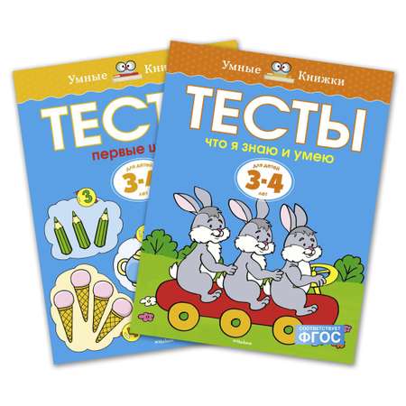 В комплект входят книги «Тесты. Первые шаги (3-4 года)» и «Тесты. Что я знаю и умею (3-4 года)».