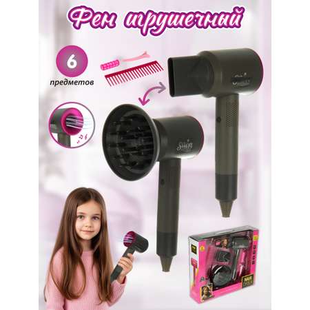 Игровой набор парикмахера для девочки. Игрушка фен с выдувом воздуха, звуком работающей техники и сменными насадками. Салон красоты детский в реалистичном дизайне, качественном исполнении, стильной расцветке. Набор стилиста детский изготовлен из прочных и долговечных материалов. Парикмахерский набор станет замечательным подарком для девочки на Новый год, День рождения, 8 марта.