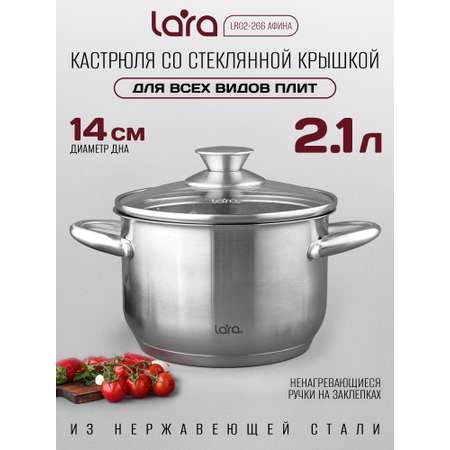 Кастрюля LARA LR02-266 (нерж) АФИНА 16x10,5см 2.1л, капсулированное индукц. дно, стекл. крышка