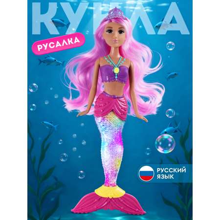Игрушка русалка выполнена из качественных материалов. В комплекте с куклой идёт корона, которая прекрасно дополнит её образ.