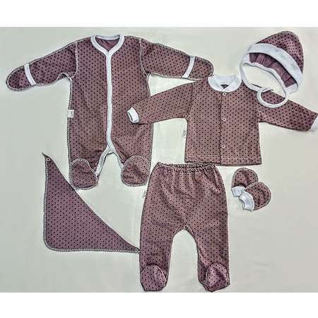 Комплект одежды для новорожденного из гладкой кулирной глади ,состоит из 6 предметов.Набор подходит для малышей ростом 62 см,что соответствует 2-3 месяцам.