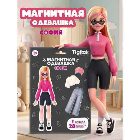 Кукла на магните от торговой марки Tigitak — это увлекательное занятие для любого ребенка. Здесь нет правил игры, точных ответов и конечного результата. Кукла на магните с одеждой, которую можно одевать бесконечное количество раз, а благодаря качественным материалам исполнения, куколка на магните прослужит долго и станет надёжным источником вдохновения для вашего ребенка. Магнитная кукла активно развивает творческие способности вашего ребенка. Для самых маленьких магнитная кукла одевашка станет помощницей в изучении предметов гардероба: одежды и обуви. Расширит кругозор и откроет новые знания о привычных вещах. Логика, внимание и память отвечают за подбор сочетания элементов одежды, сезонности их применения и соотношение цветовых акцентов. Мелкая моторика задействована при каждом контакте с элементами игры. А предложенные задания активизируют мышление и интерес к поиску решения. Элементы одежды, выполненных из плотного картона с одной стороны и магнитного винила с оборотной стороны. Благодаря чему детали объемные и приятные на ощупь. Они удобно помещаются в детскую ладошку, с ними комфортно играть. Еще одним преимуществом является способ хранения игры. Все герои и элементы одежды изначально расположены на цельных листах, при извлечении из которых остаются шаблоны-контуры. По окончанию игры, можно предложить ребенку найти «домики» каждого предмета или героя. Малыш приобретает дополнительный навык самостоятельной уборки своих игрушек. Заполненные листы свободно помещаются в коробку из плотного картона. Таким образом, набор прослужит дольше и сохранит свой исходный вид. Увлекательная игра станет отличным решением для домашнего досуга с родителями, для путешествий, для развлечения в поликлинике или в любой другой момент ожидания. Кукла на магните с одеждой всегда производит яркое впечатление и может стать приятным подарком для малыша, как на праздник в детский сад, так и на день рождения, именины или, как знак внимания вместо сладостей. Набор станет отличным поводом весело провести время вместе с ребёнком!