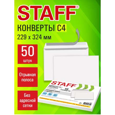Конверты почтовые Staff бумажные С4 белые 229х324 мм набор 50 штук