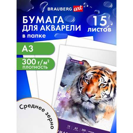 Бумага для акварели БОЛЬШАЯ А3 в папке от BRAUBERG ART CLASSIC — идеальное решение для тех, кто ценит качество и удобство в рисовании. Этот набор из 15 листов формата А3 с плотностью 300 г/м2 создан специально для работы с акварелью, гуашью художественной и другими видами водорастворимых красок. Благодаря среднему зерну и высокой белизне 100%, бумага для рисования обеспечивает яркую и чистую передачу цвета, что особенно важно для школьных занятий и как любительских, так и профессиональных художественных проектов. Ее прочность и устойчивость к влаге позволяют использовать листы для создания миниатюр и иллюстраций с мелкими деталями. Удобная папка сохраняет целостность акварельной бумаги и готовых работ, что делает этот набор листов незаменимой канцелярией для школы и творчества. Если вы ищете качественную бумагу для рисования, этот продукт станет отличным выбором и для акварели художественной, и для других техник.