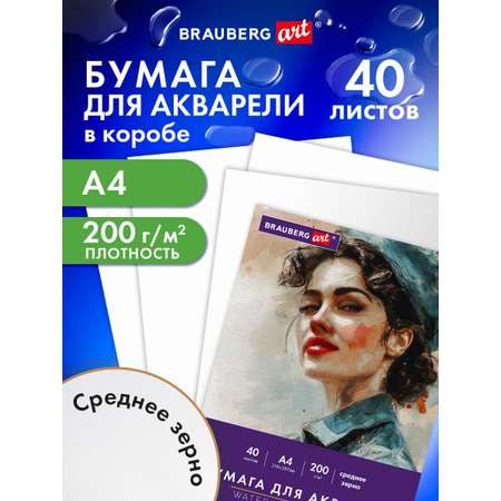 Бумага для акварели А4 в коробке от BRAUBERG ART CLASSIC — идеальное решение для тех, кто ценит качество и удобство в рисовании. Этот набор из 40 листов формата А4 с плотностью 200 г/м2 создан специально для работы с акварелью, гуашью художественной и другими видами водорастворимых красок. Благодаря среднему зерну и высокой белизне 100%, бумага для рисования обеспечивает яркую и чистую передачу цвета, что особенно важно для школьных занятий и как любительских, так и профессиональных художественных проектов. Ее прочность и устойчивость к влаге позволяют использовать листы для создания миниатюр и иллюстраций с мелкими деталями. Удобная коробка сохраняет целостность акварельной бумаги и готовых работ, что делает этот набор листов незаменимой канцелярией для школы и творчества. Если вы ищете качественную бумагу для рисования, этот продукт станет отличным выбором и для акварели художественной, и для других техник.