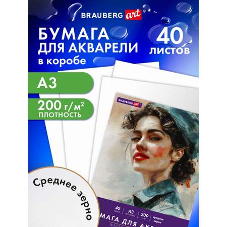 Бумага для акварели БОЛЬШАЯ А3 в коробке от BRAUBERG ART CLASSIC — идеальное решение для тех, кто ценит качество и удобство в рисовании. Этот набор из 40 листов формата А3 с плотностью 200 г/м2 создан специально для работы с акварелью, гуашью художественной и другими видами водорастворимых красок. Благодаря среднему зерну и высокой белизне 100%, бумага для рисования обеспечивает яркую и чистую передачу цвета, что особенно важно для школьных занятий и как любительских, так и профессиональных художественных проектов. Ее прочность и устойчивость к влаге позволяют использовать листы для создания миниатюр и иллюстраций с мелкими деталями. Удобная коробка сохраняет целостность акварельной бумаги и готовых работ, что делает этот набор листов незаменимой канцелярией для школы и творчества. Если вы ищете качественную бумагу для рисования, этот продукт станет отличным выбором и для акварели художественной, и для других техник.