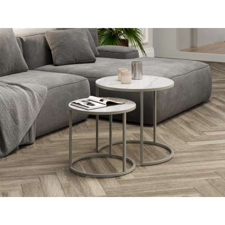 Стол журнальный SLINE Верона керамогранит 40/50 белый глянец/титан