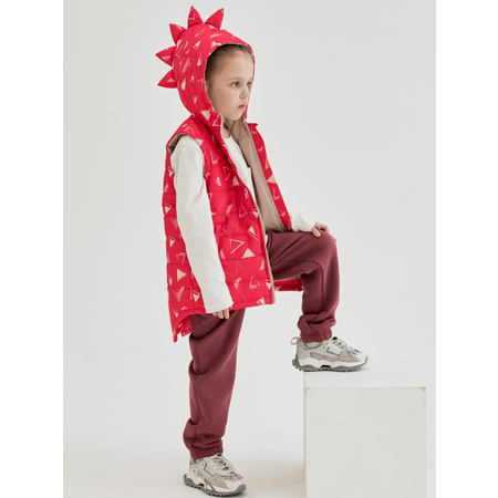 Эта жилетка, украшенный стилизованными гребнями дино на капюшоне и спинке, добавляет модный и забавный вид, что обязательно понравится маленьким модникам. Прямой крой оверсайз не сковывает движения, позволяя ребенку свободно бегать, играть и чувствовать себя комфортно на прогулках, в школе или во время семейных поездок. Удобно надевать на зимнюю одежду, жилет легкий, но в то же время сохраняет тепло, что делает его универсальным элементом гардероба для весенних и осенних дней.