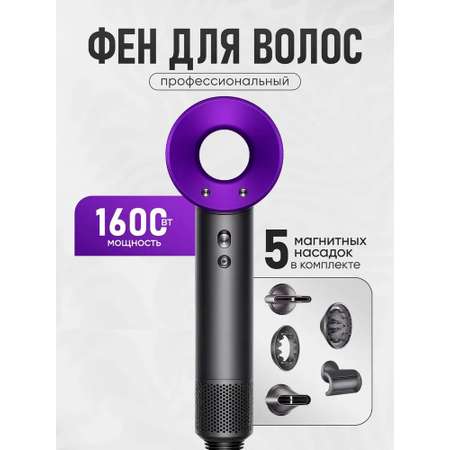 Фен с 5 магнитными насадками CASTLELADY с ионизацией 1600 BT шнур 1,8 метра фиолетовый