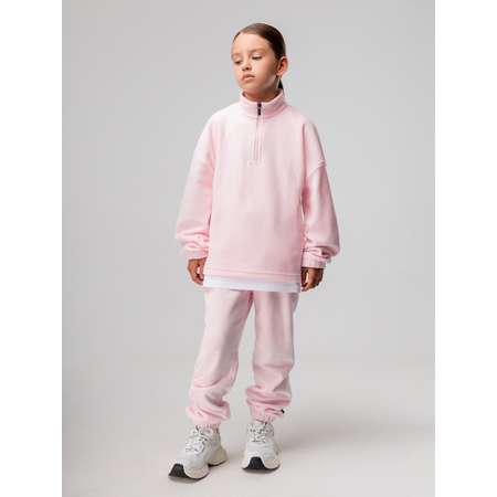 Толстовка без подкладки, прямого силуэта со спущенным плечом, втачными рукавами с цельнокроеной манжетой с резинкой внутри. Воротник-стойка, застёгивается на короткую молнию по центру полочки. Низ изделия ровный.