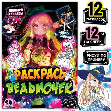 Раскраска Sima-Land по образцу с наклейками Раскрась ведьмочек 16 стр