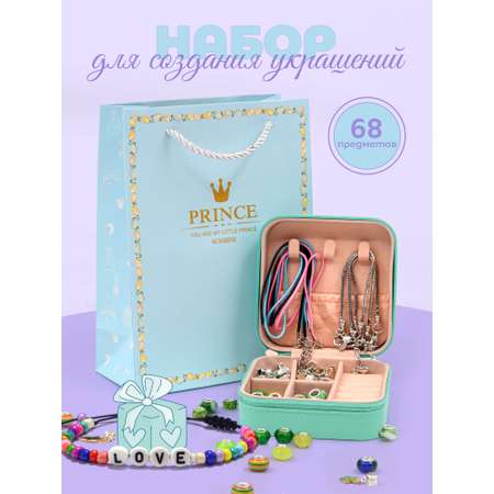 Такой набор станет чудесным подарком для маленькой принцессы. Восхитительный комплект вдохновит юную модницу на творчество и позволит создавать стильные аксессуары для себя и своих подружек. В набор входит: 20 ярких бусин, 20 шармов, 20 подвесок, 3 основы для браслета, 3 шнурка для ожерелий, удобная шкатулочка из непромокаемого материала на молнии и подарочный пакет. Собирать браслеты и ожерелья по собственному дизайну не только интересно и увлекательно, но и позволит провести время с пользой. Создание украшений развивает креативность и фантазию, способствует развитию мелкой моторики и усидчивости, идеально подходит для совместного творчества с родителями или друзьями, прекрасный способ создать уникальные подарки для близких. Благодаря красивой шкатулочке и подарочному пакету, набор является уже готовым подарком, о котором мечтает каждая девочка!
